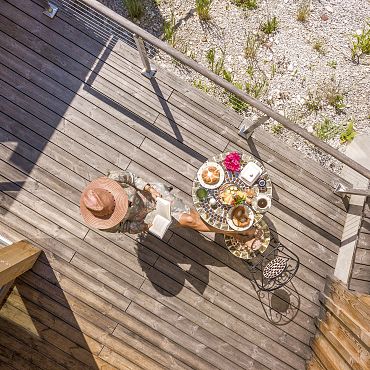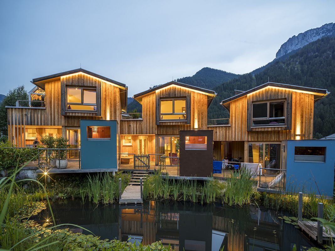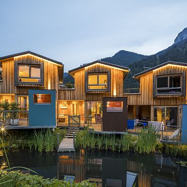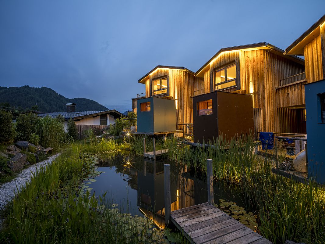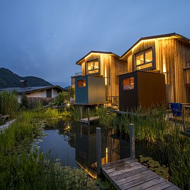 Stylisch, luxuriös und absolut gemütlich. Das ist das Chalet Berg.Kunst mit hauseigener Sauna auf der Terrasse und privatem Steg am Biotop. Viel Holz und Naturmaterialien, edle Stoffe, Designermöbel, lichtdurchflutete Räume und kuschelige zum Teil überdachte Außenbereiche zum Relaxen.