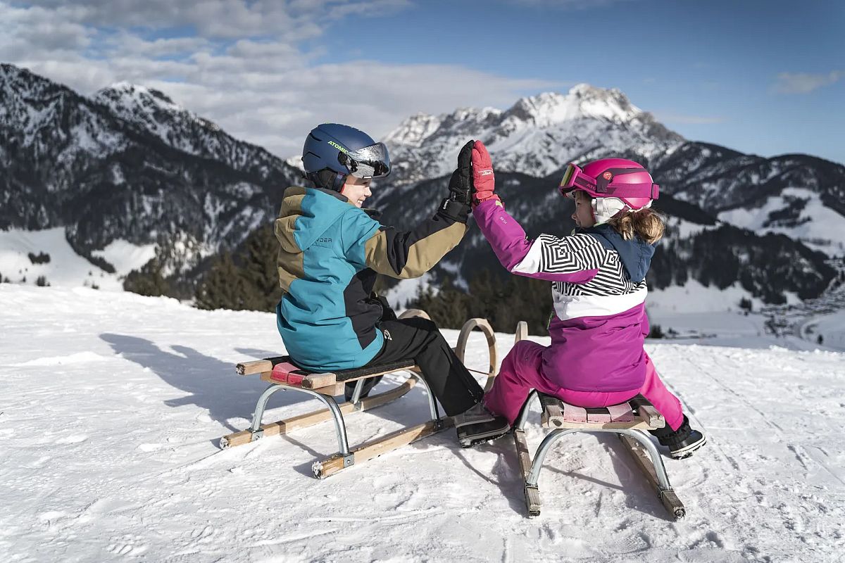 Hier erleben Familien gemeinsame Momente voller Schnee, Lachen und Erholung – mitten in den Kitzbüheler Alpen.
