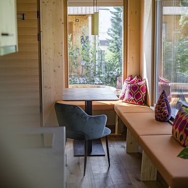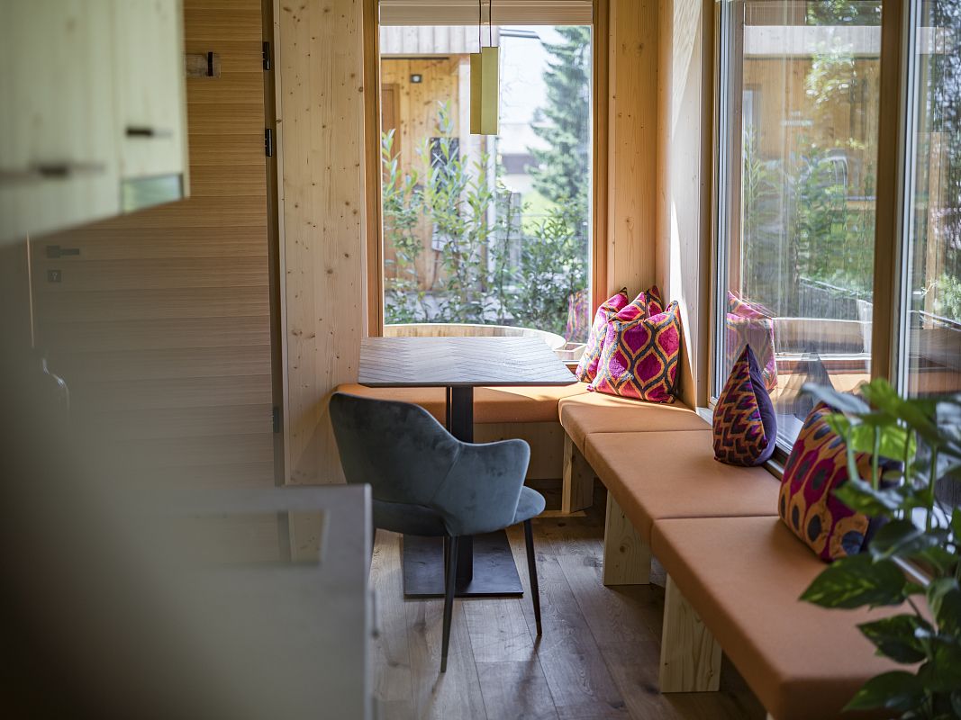 Im Tiny Chalet Kalipé bist du ganz für dich – und doch mittendrin: Der öffentliche Gartenbereich der Alpegg Chalets bietet viele Extras: