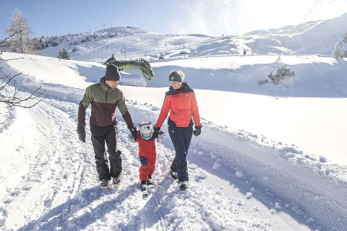 Right outside the Alpegg Chalets, you can take the gondola up to the Steinplatte Waidring – a family-friendly ski area featuring the Triassic Park winter adventure. Here, fun awaits snow lovers of all ages: child-friendly slopes, ski schools with caring instructors, and an exciting winter program that makes a family holiday in the PillerseeTal truly unforgettable.