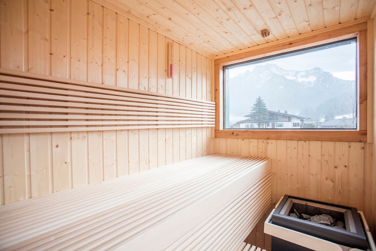 At the Premium Chalet Berg.Pioniere, you can relax in the cozy hot tub on the rooftop terrace while enjoying the breathtaking view of the Steinplatte. The outdoor sauna, located on the partially covered terrace on the ground floor, invites you to sweat and unwind.