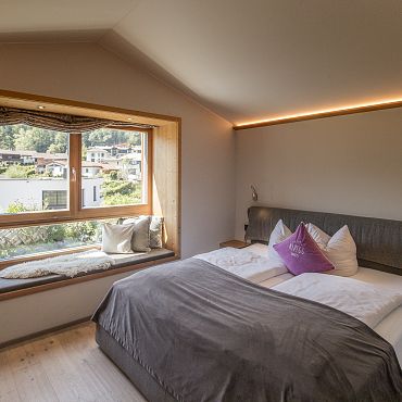 The chalet is available for 2 to 4 guests. For families, the holiday home accommodates 2 adults and up to 3 children. Inquire now and book a Premium chalet from the Bio Chalets Alpegg.