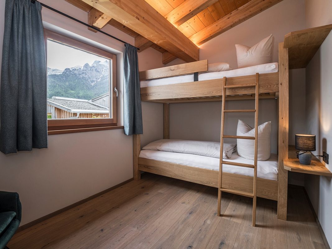 The chalet accommodates families and friends of up to 6 guests, with two double bedrooms and a charming bunk bed room for two.